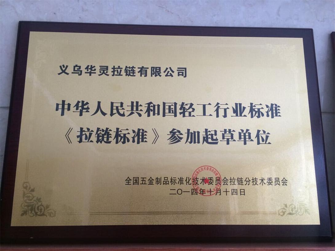 公司参加中国轻工业行业标准《拉链标准》起草。